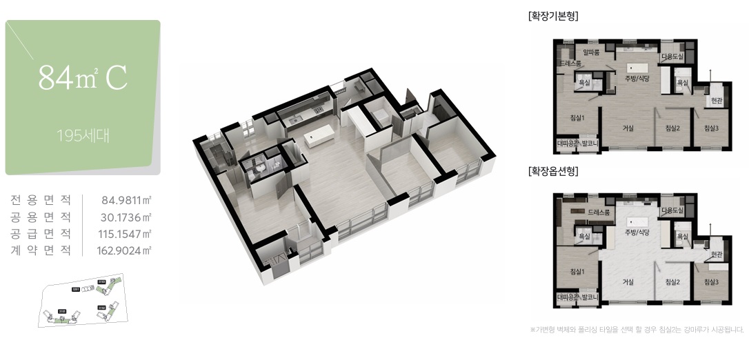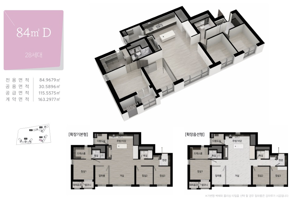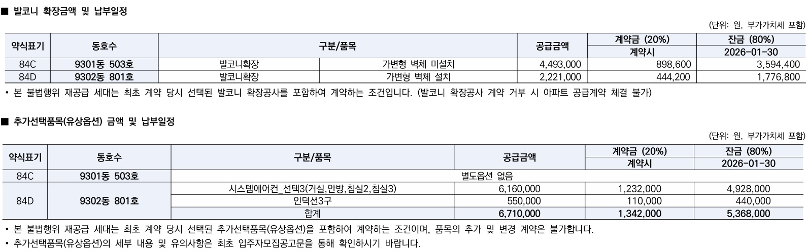 필수 승계 조건: 본 아파트는 발코니 확장 및 모든 유상옵션을 최초 계약 상태 그대로 승계하는 조건으로만 계약 체결이 가능하며, 변경(추가/취소)은 불가합니다.